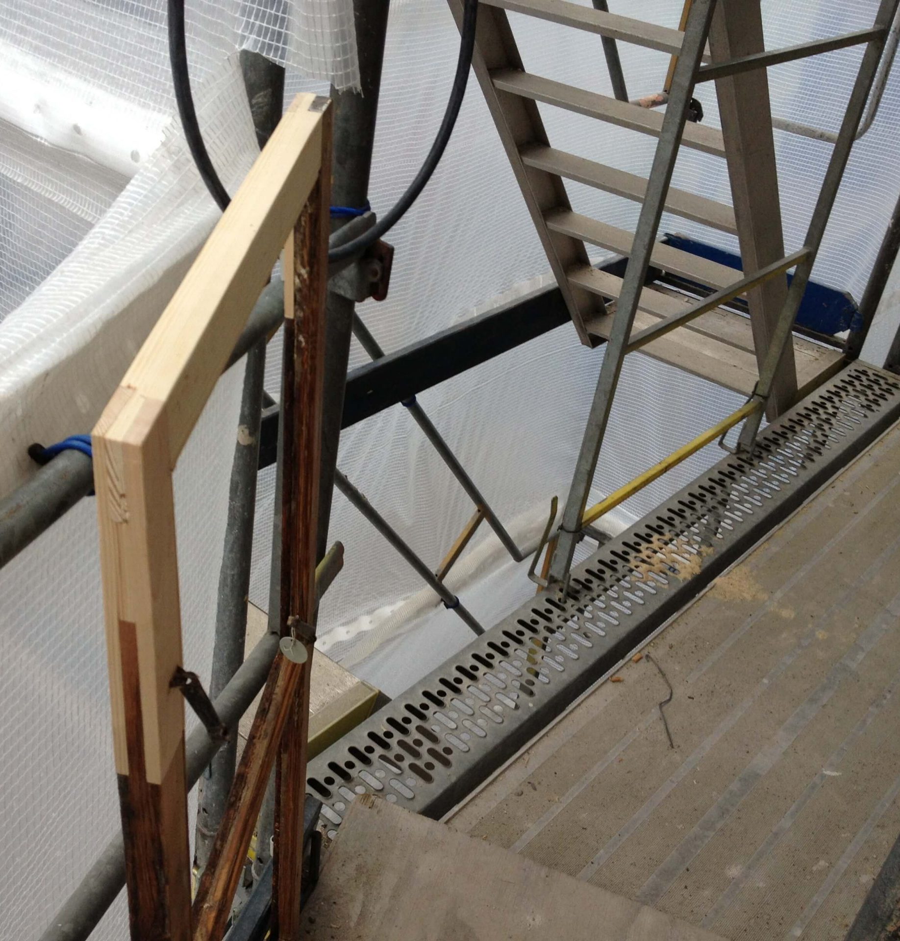 I forbindelse med restaurering af tropehusets tag og facader, har Curacon A/S udført udskiftning af nedbrudt træ i drivhusets øverste del, samt partiel udskiftning af